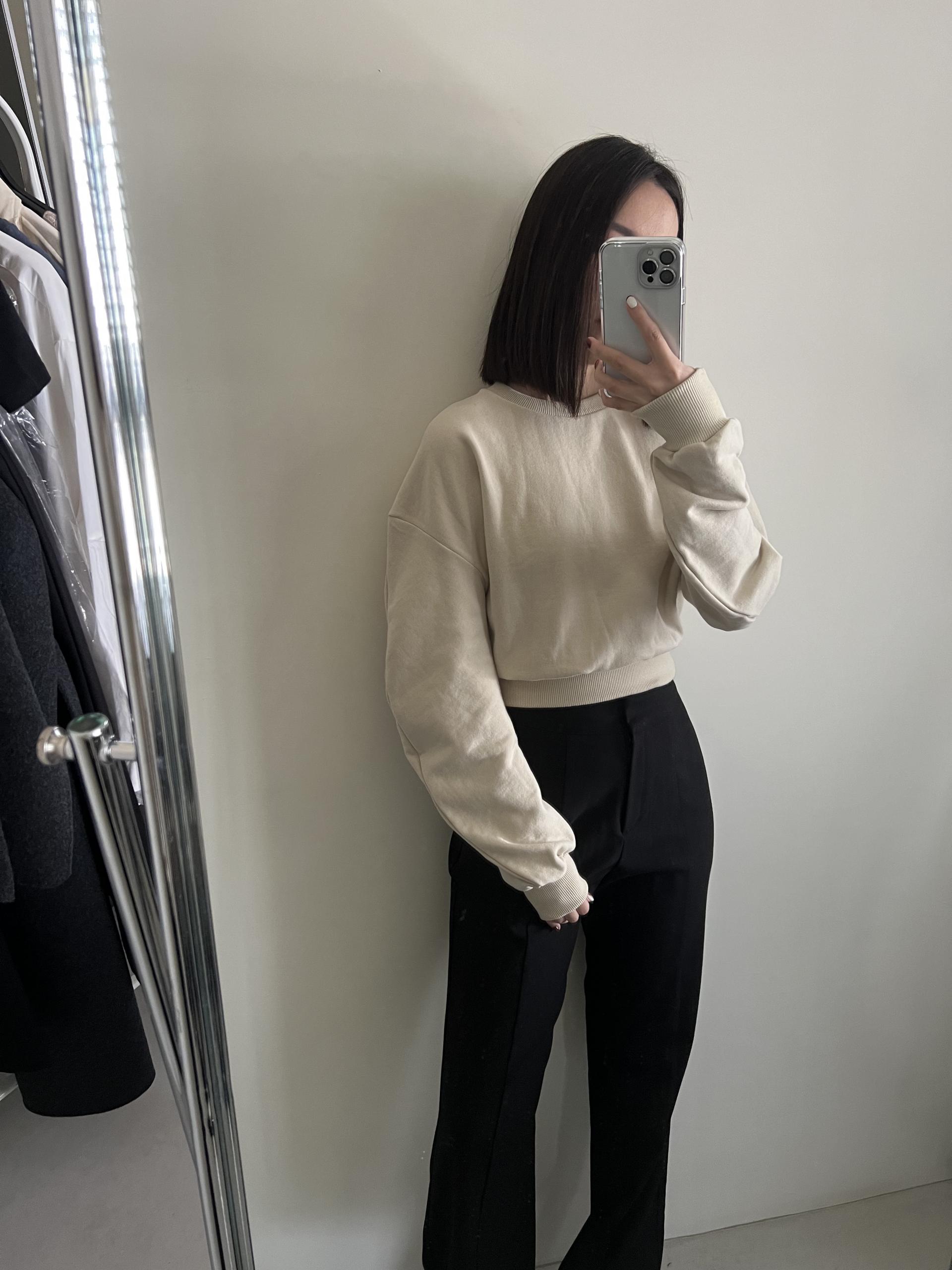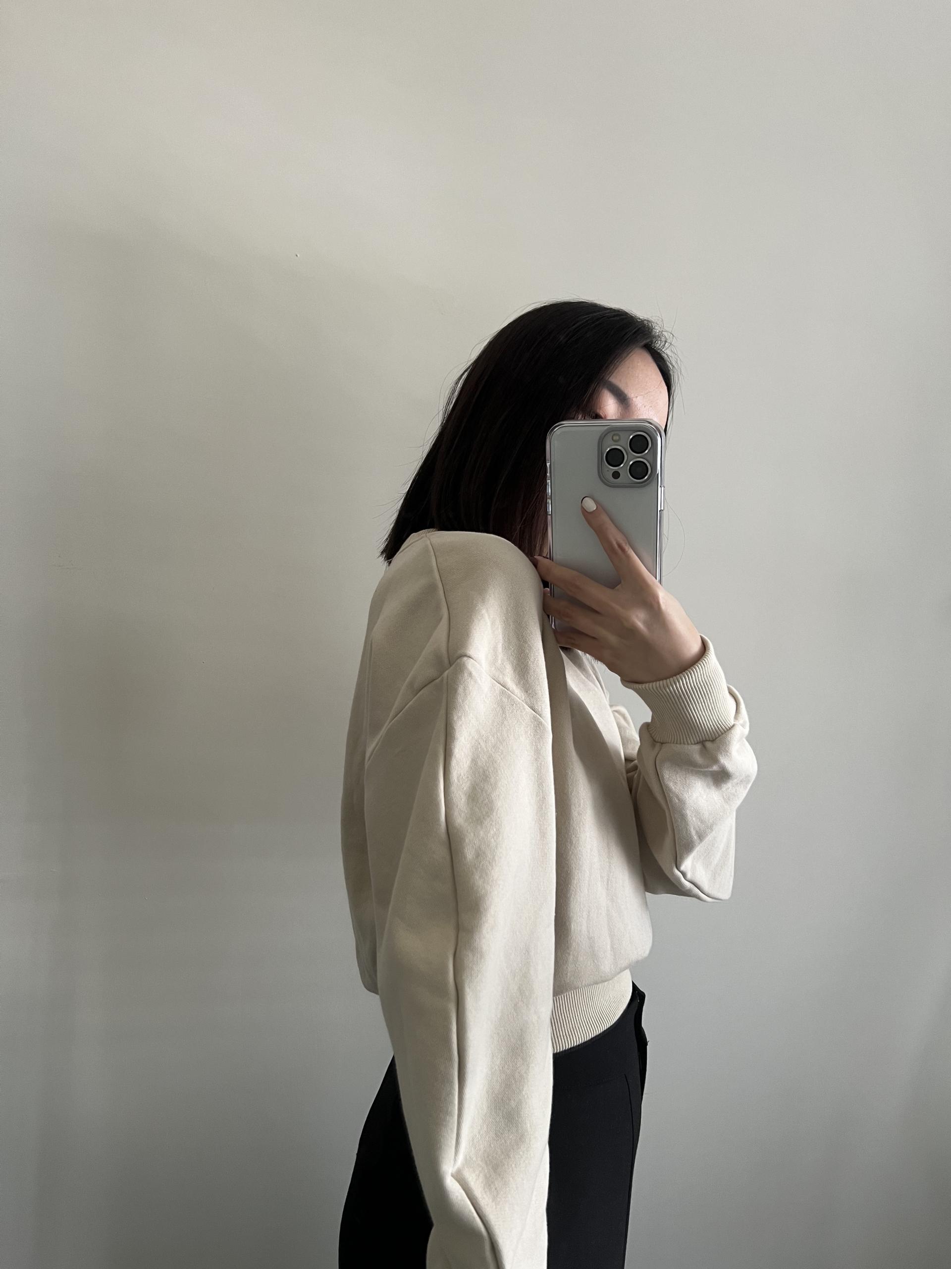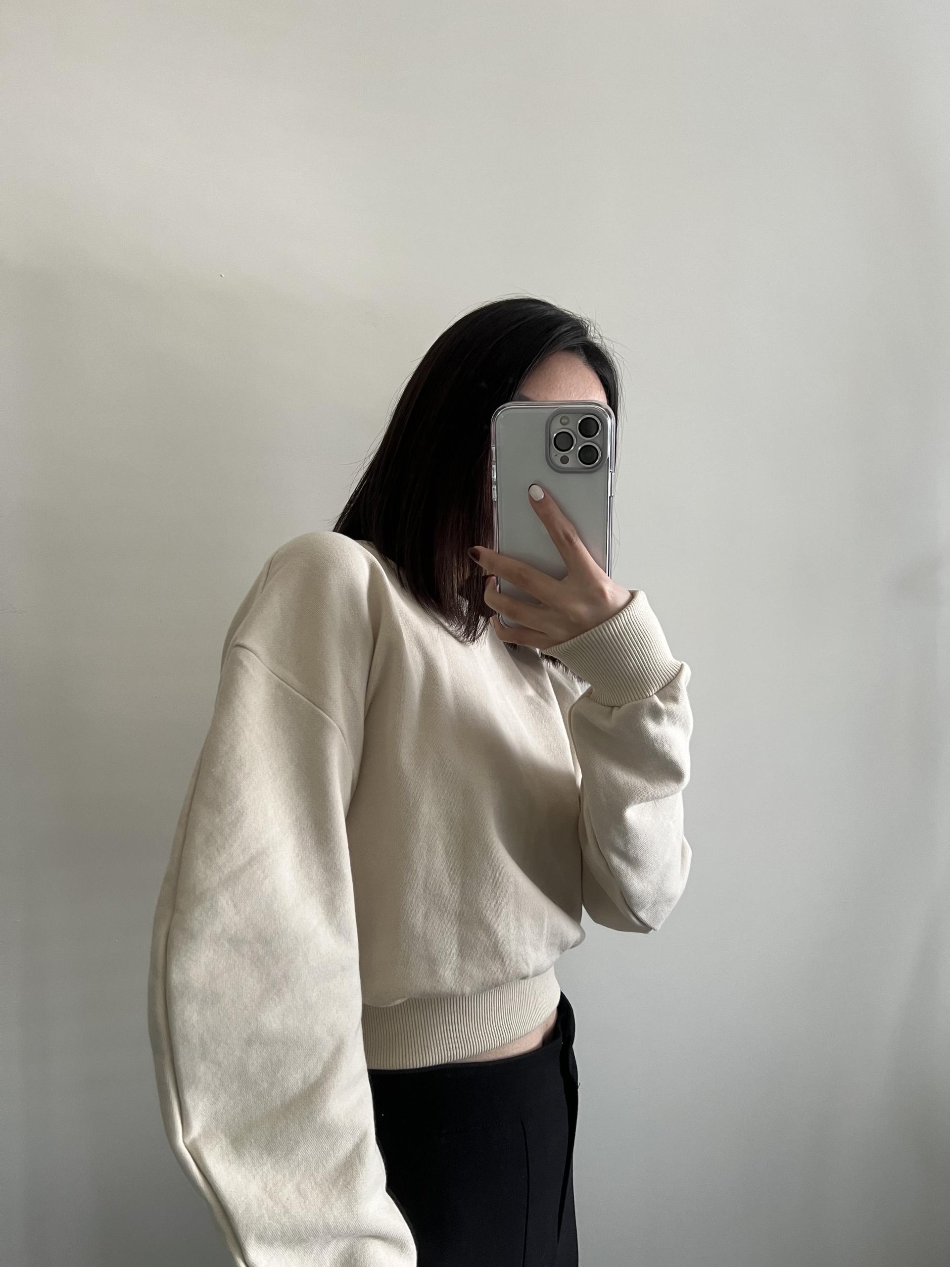 奶油杏色弧形袖短版衛衣