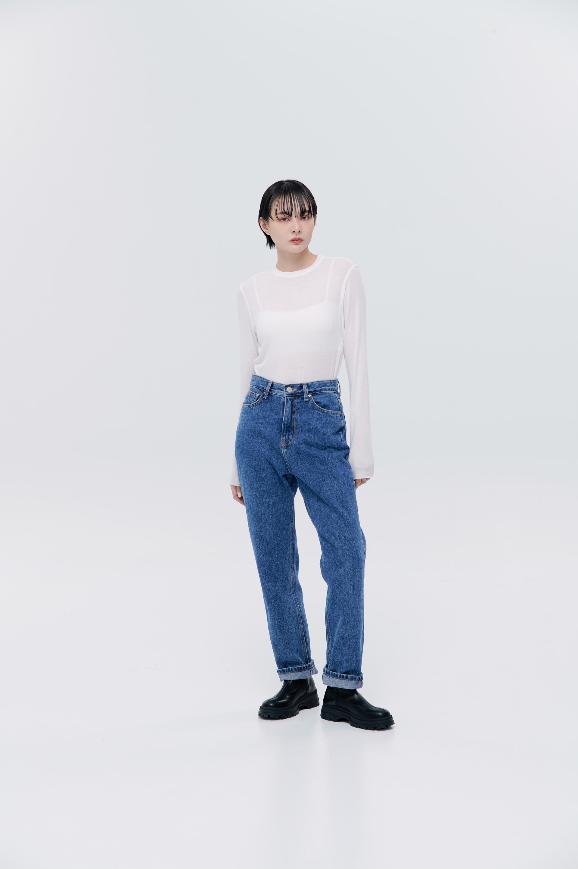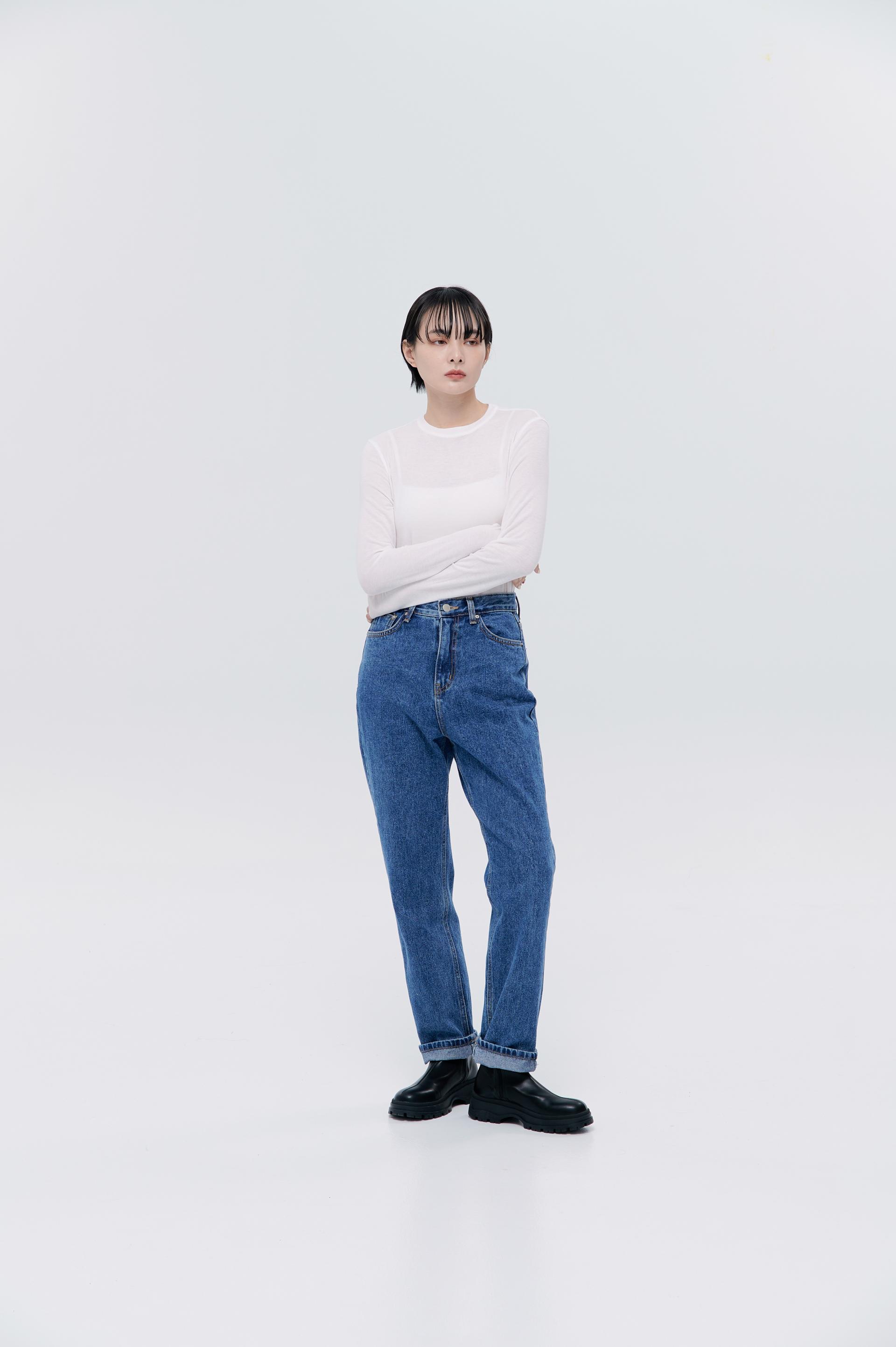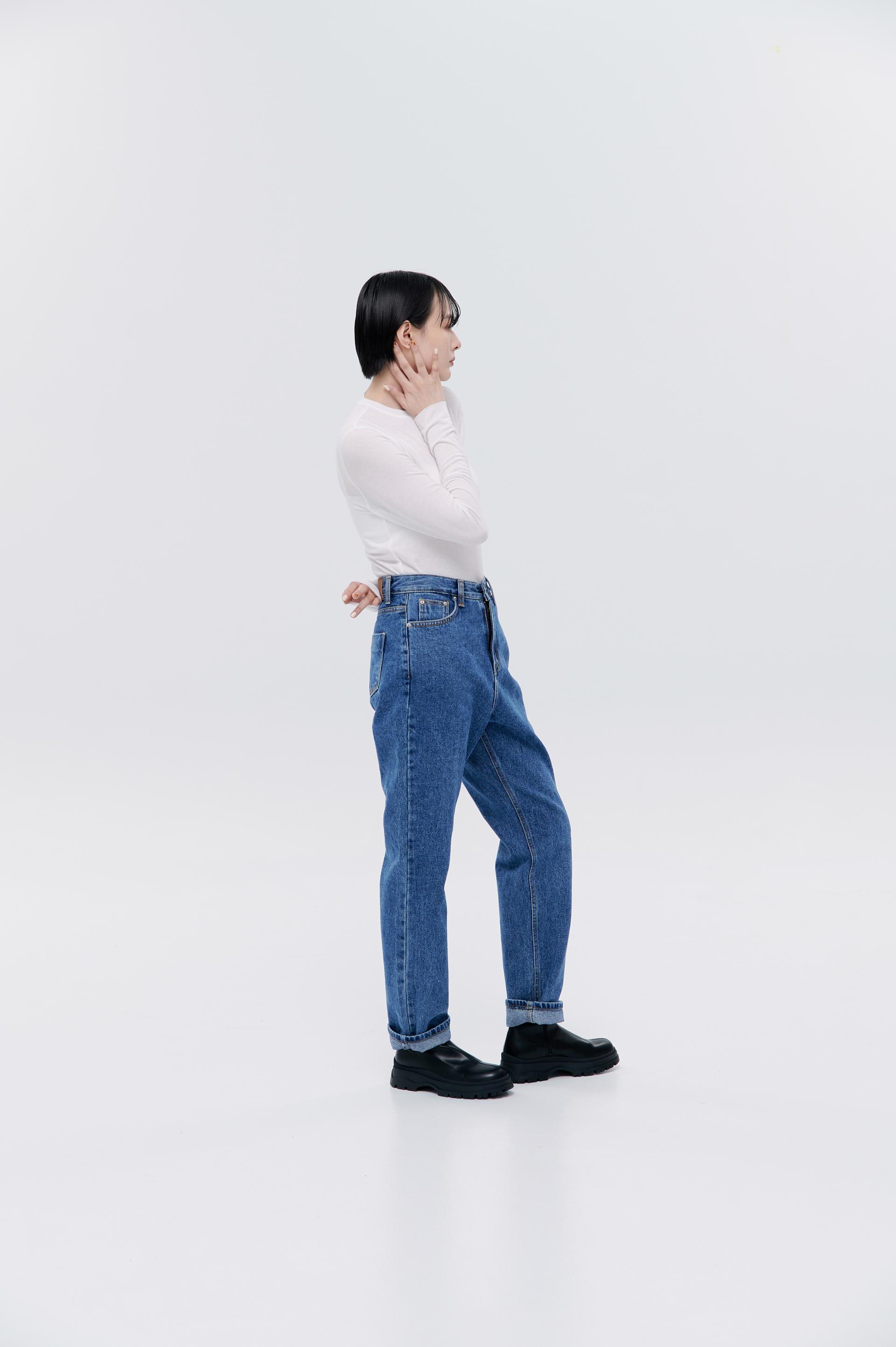 激瘦挺版面料修身牛仔褲(中藍)