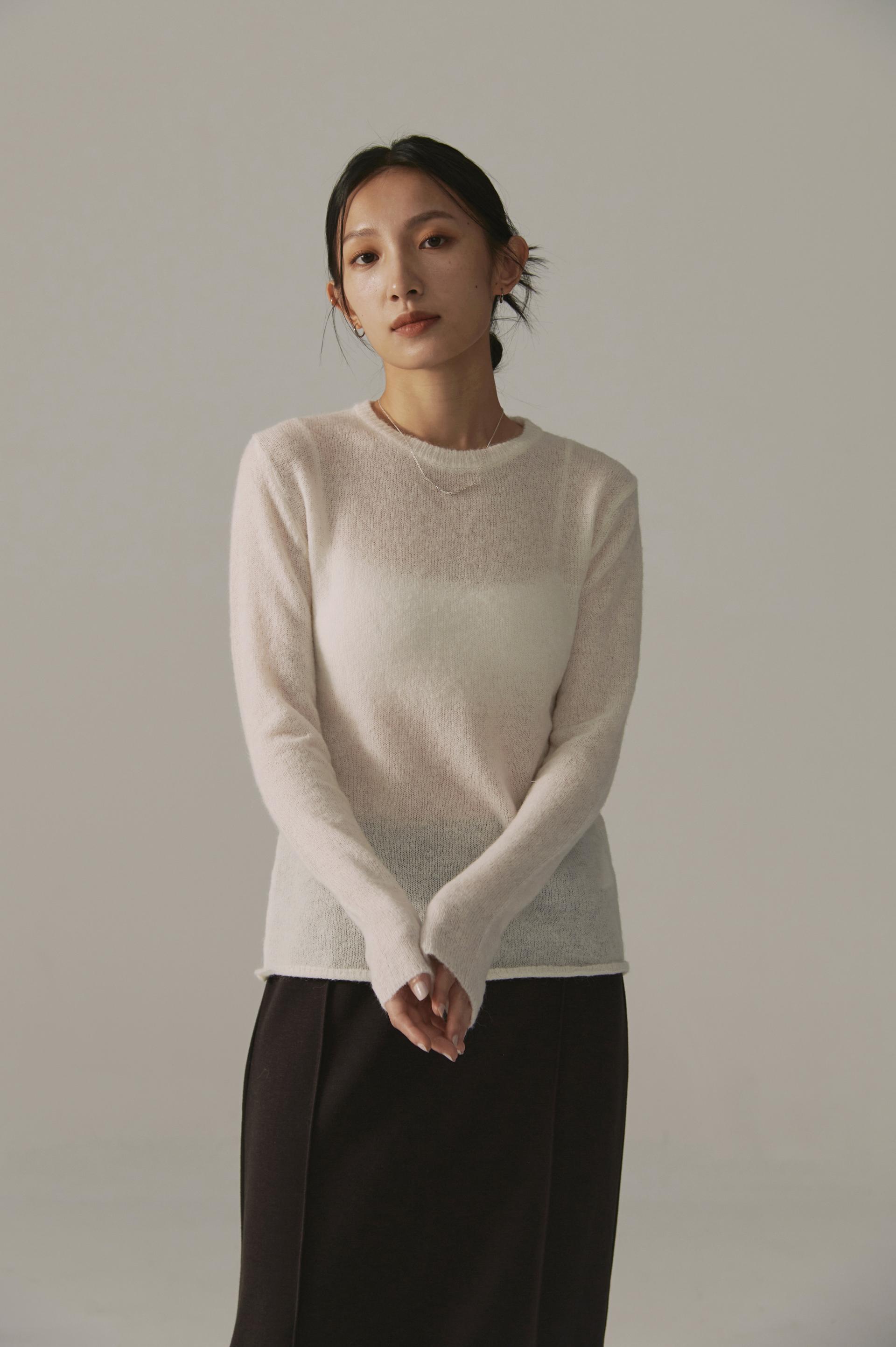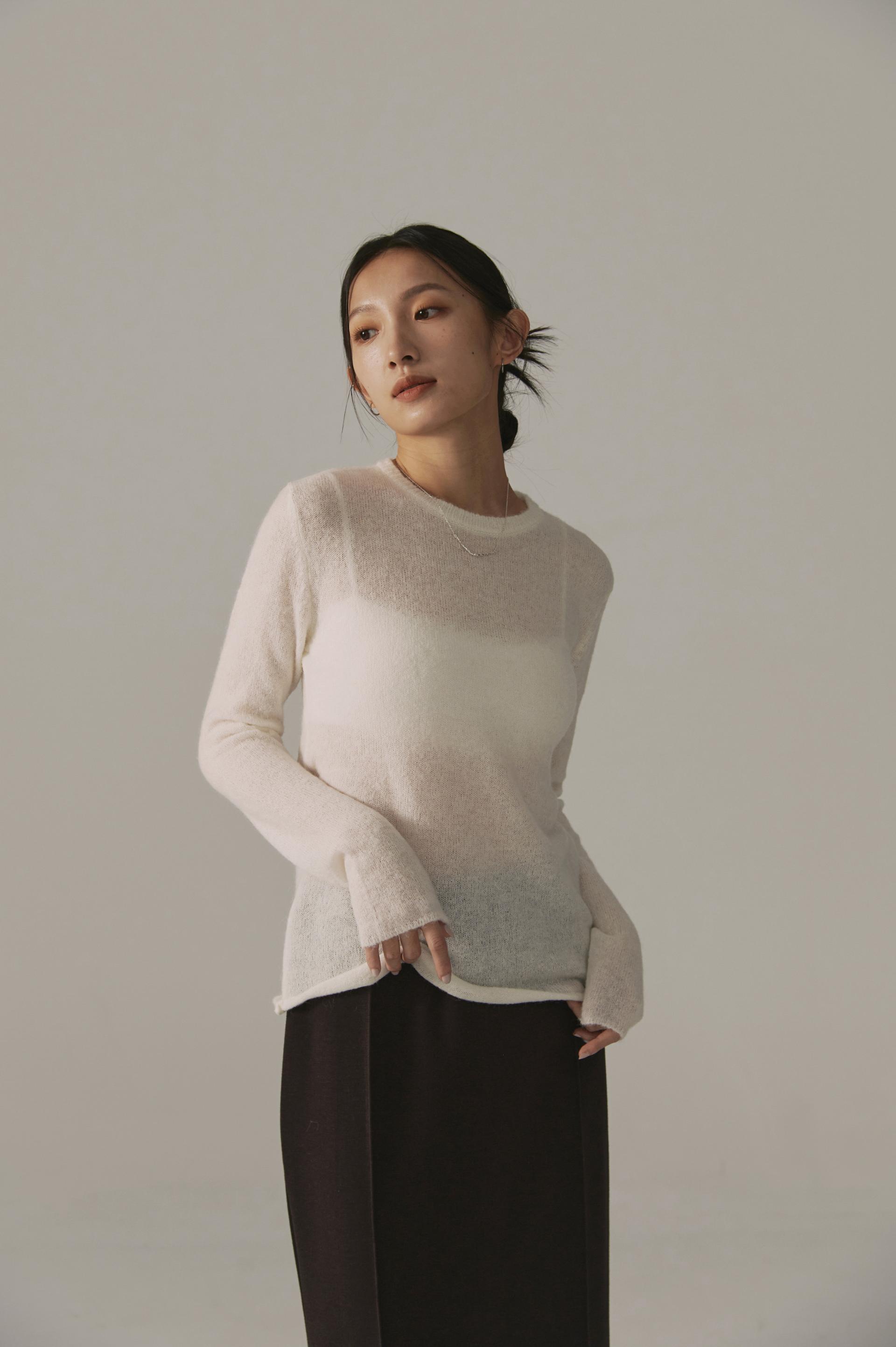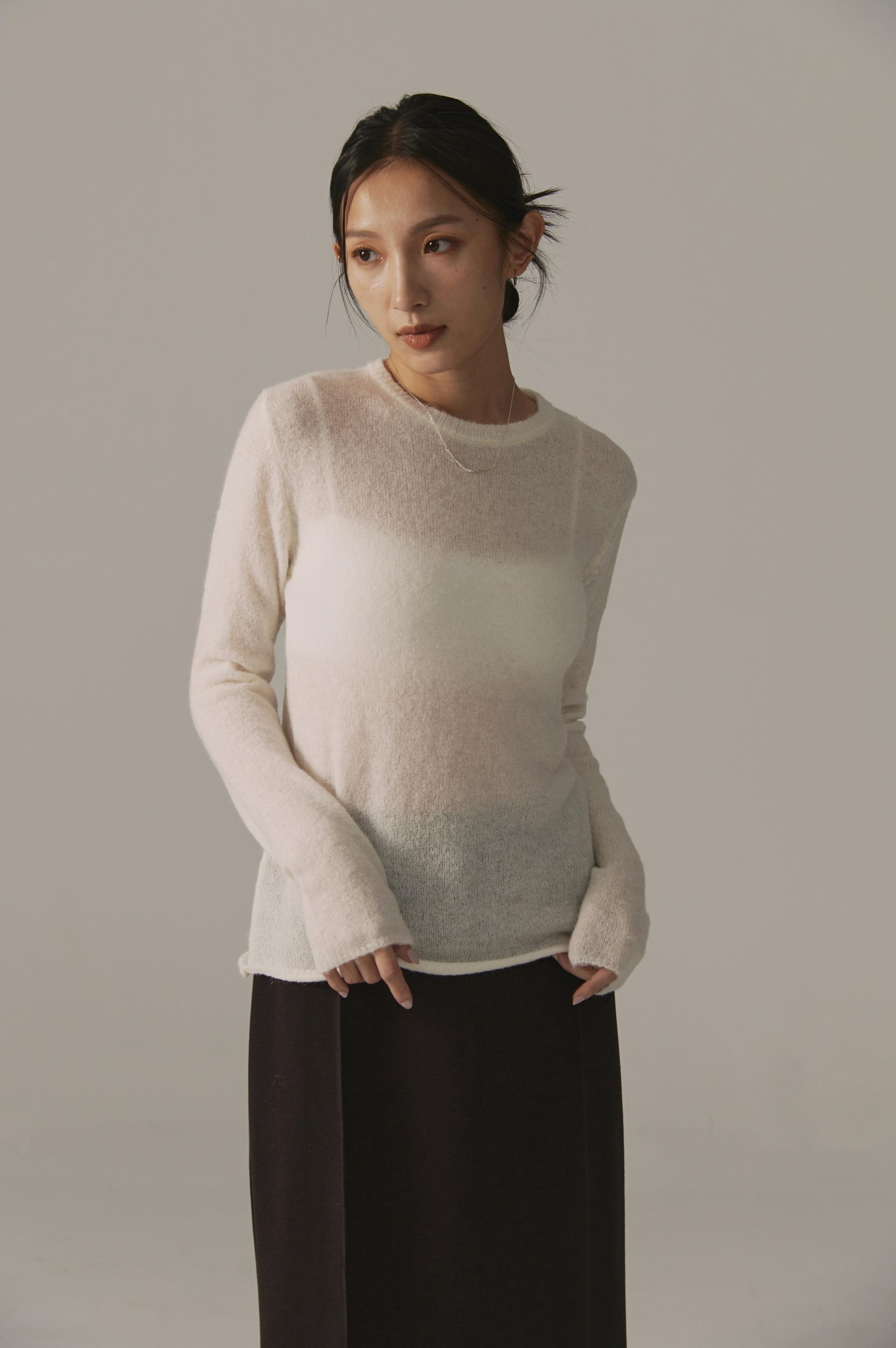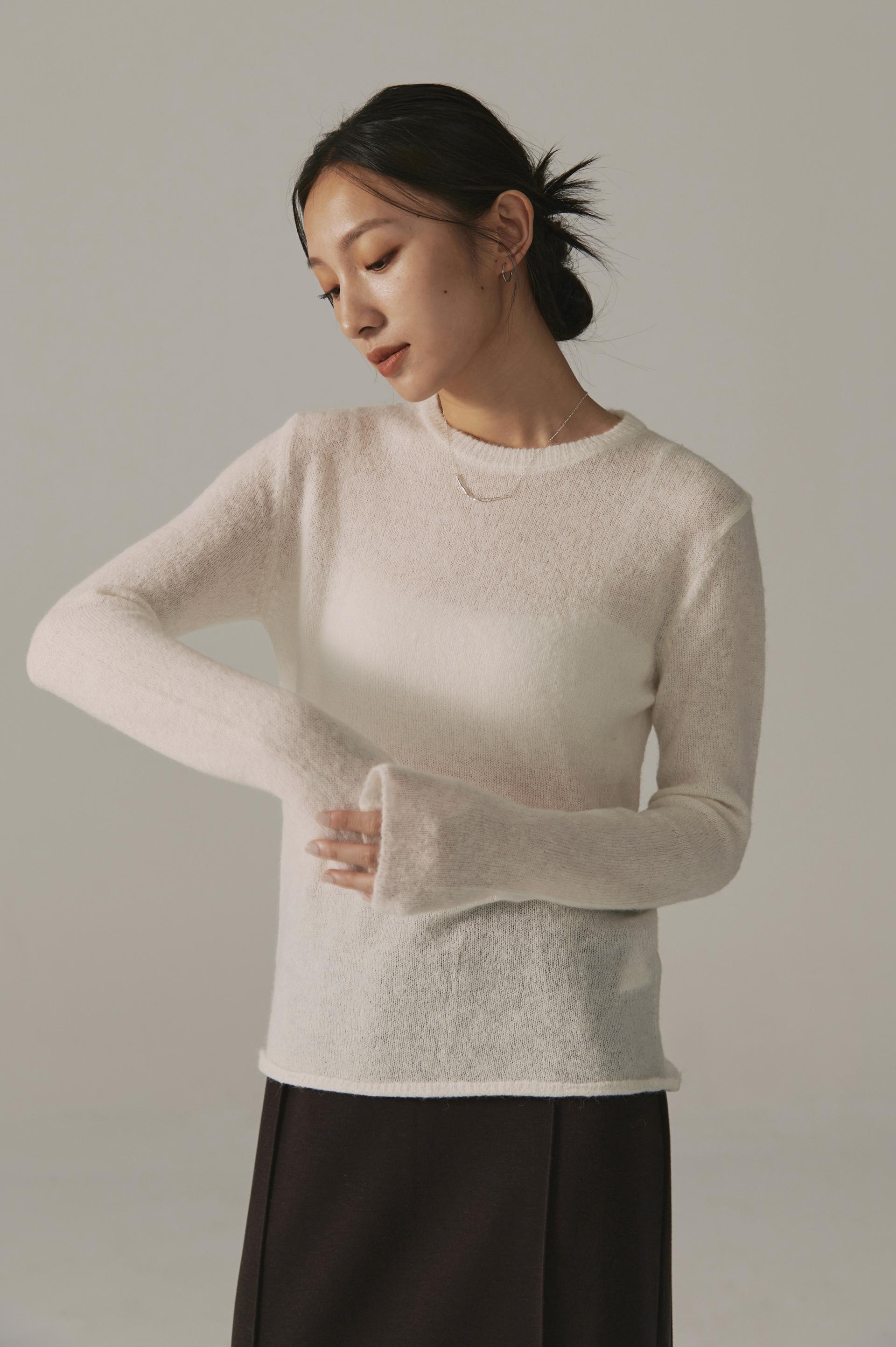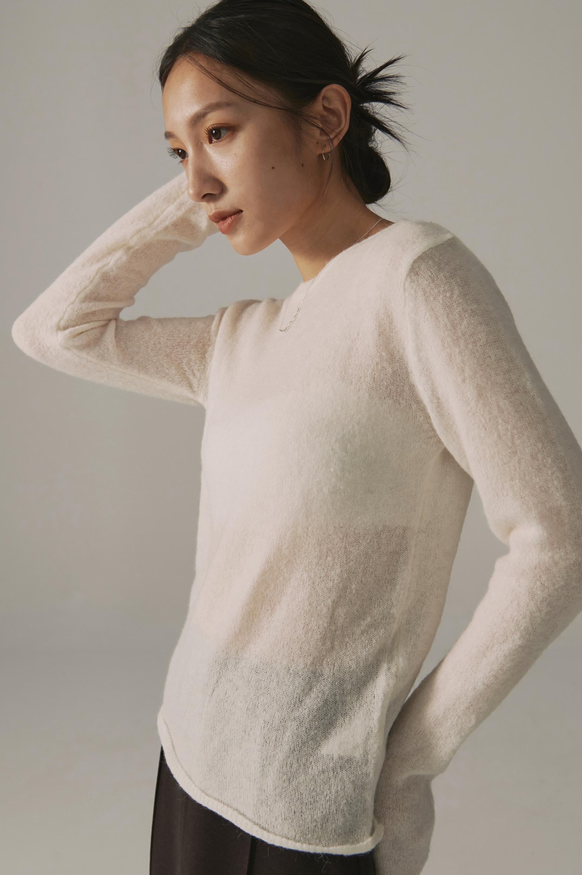 高端設計師baby alpaca輕透柔軟針織毛衣(白/黑)