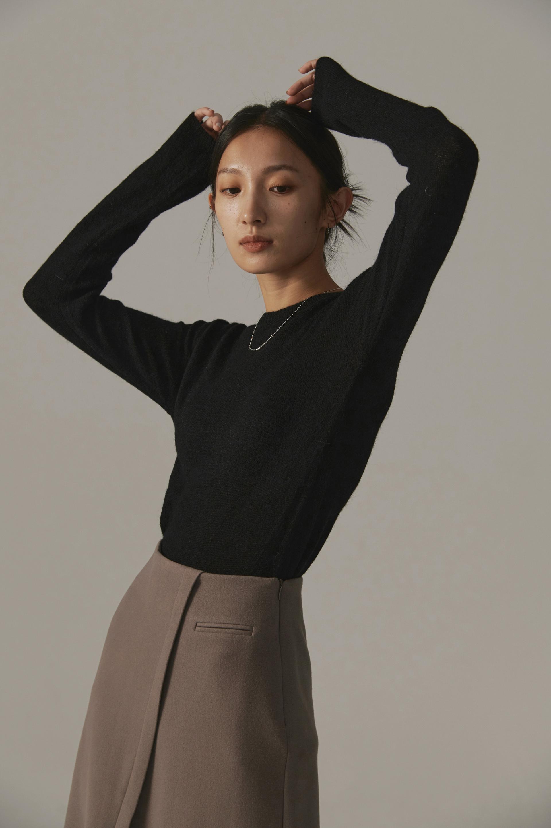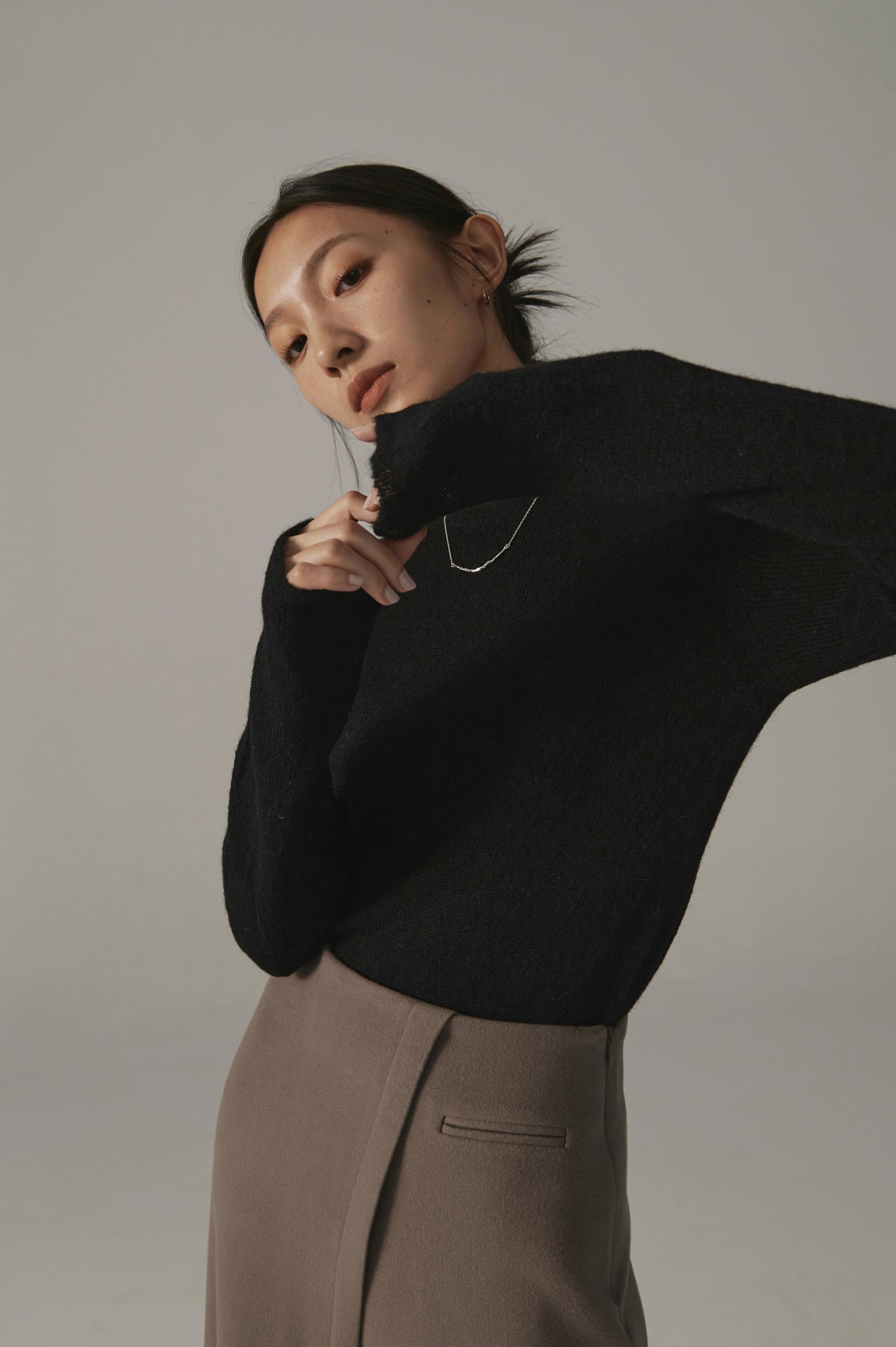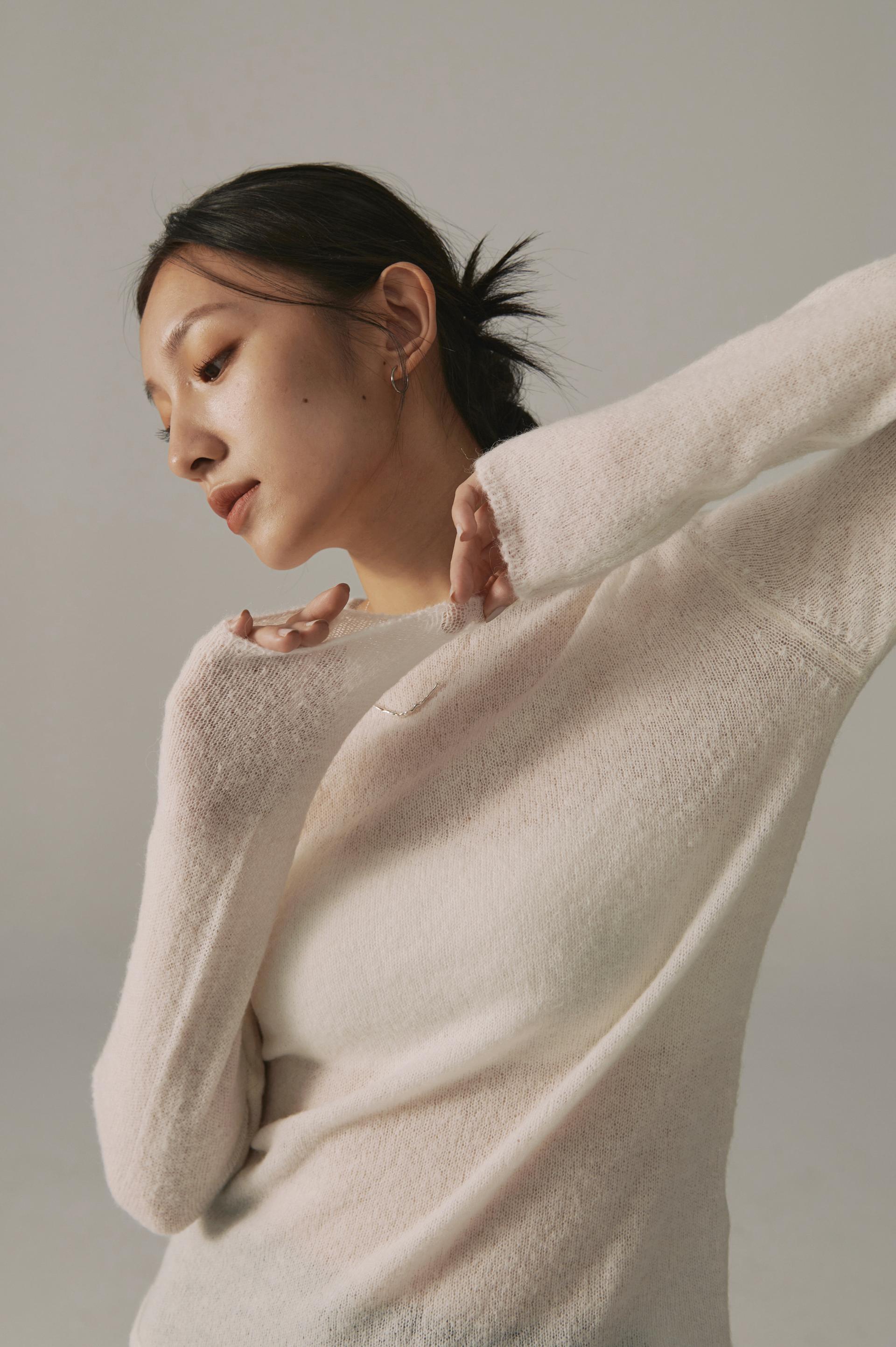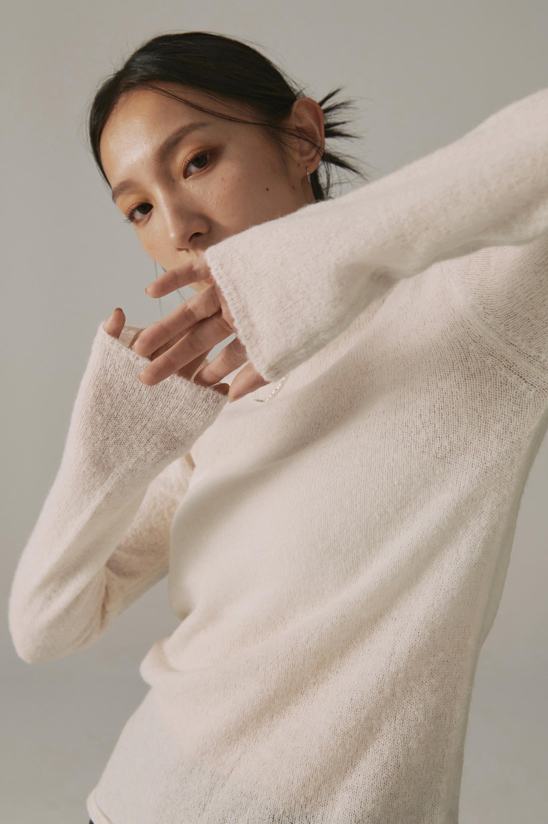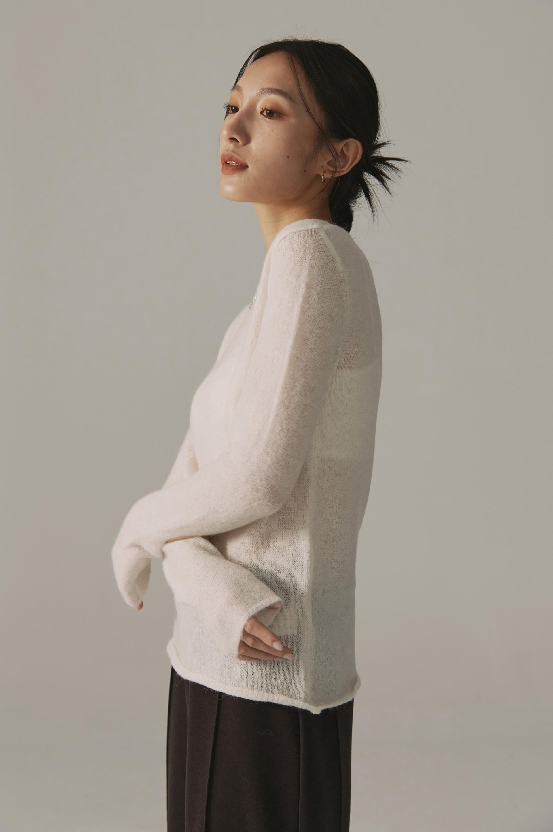 高端設計師baby alpaca輕透柔軟針織毛衣(白/黑)