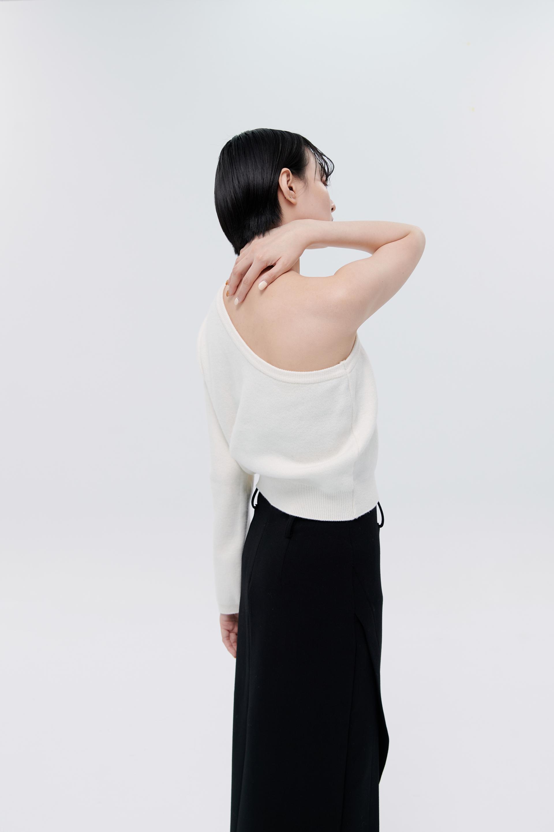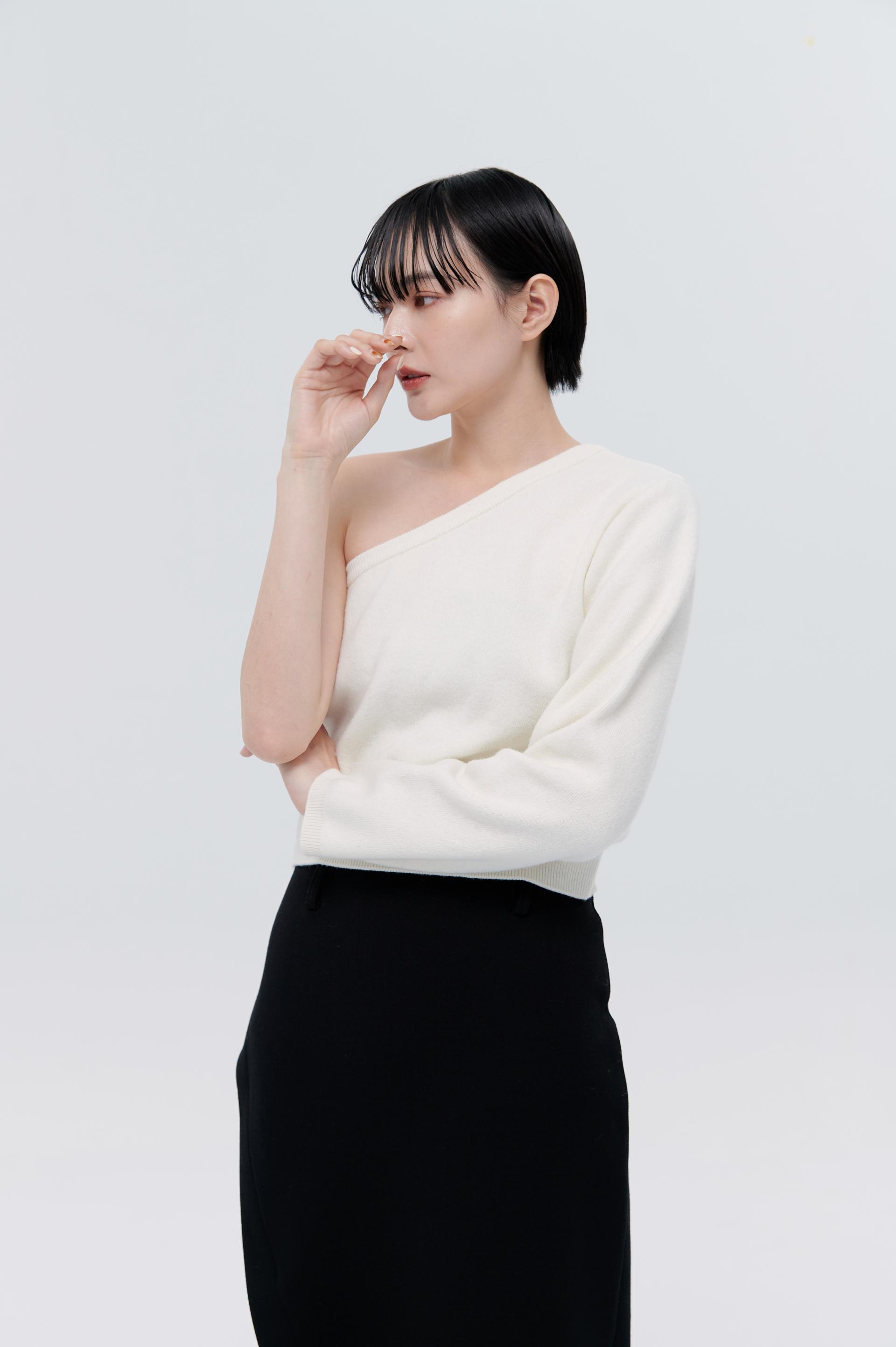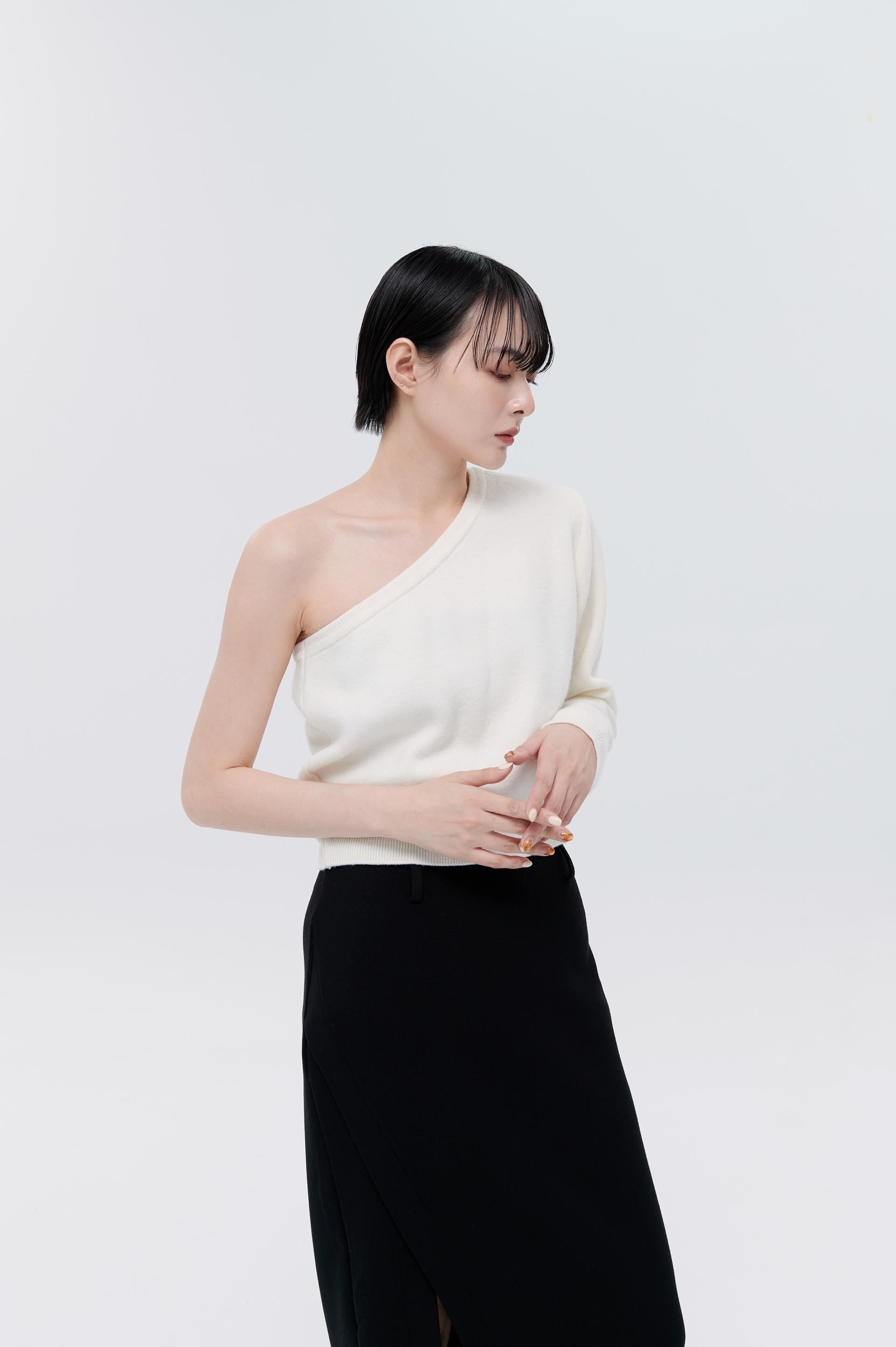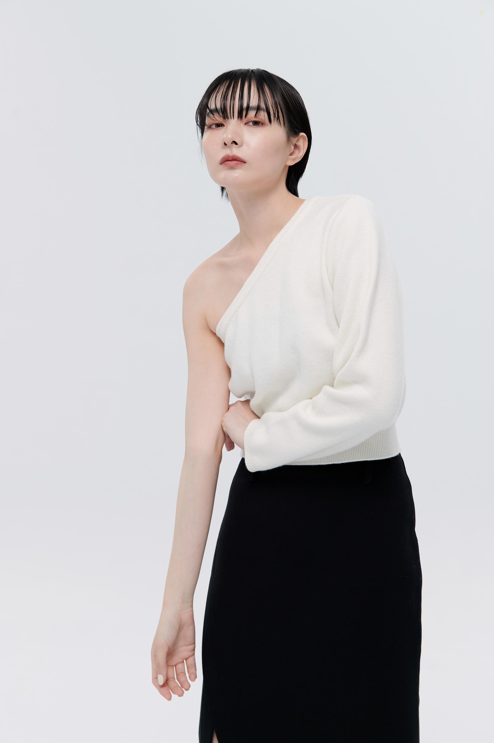 cashmere柔軟親膚單肩毛衣(米白)