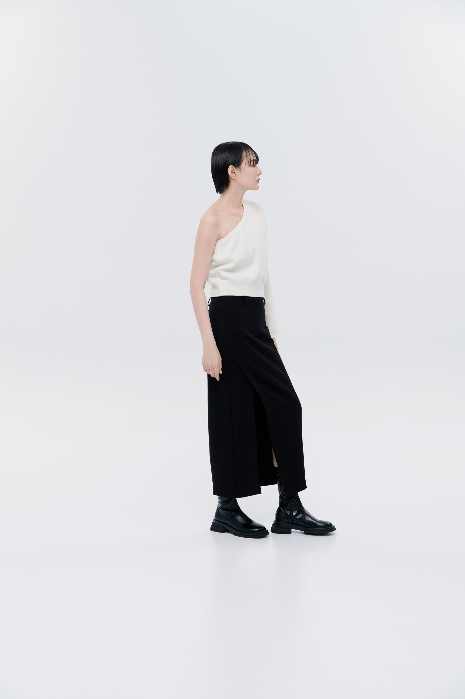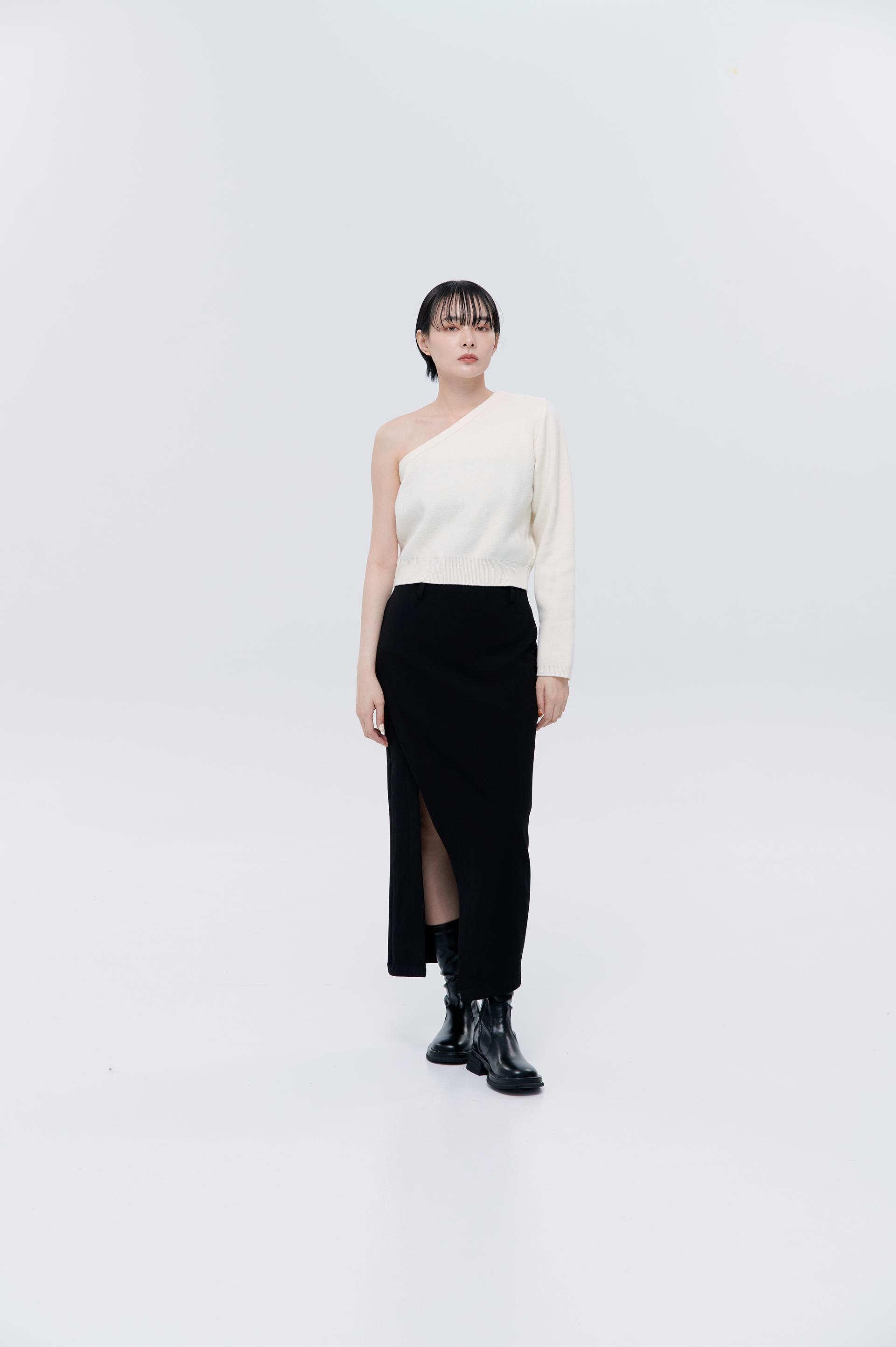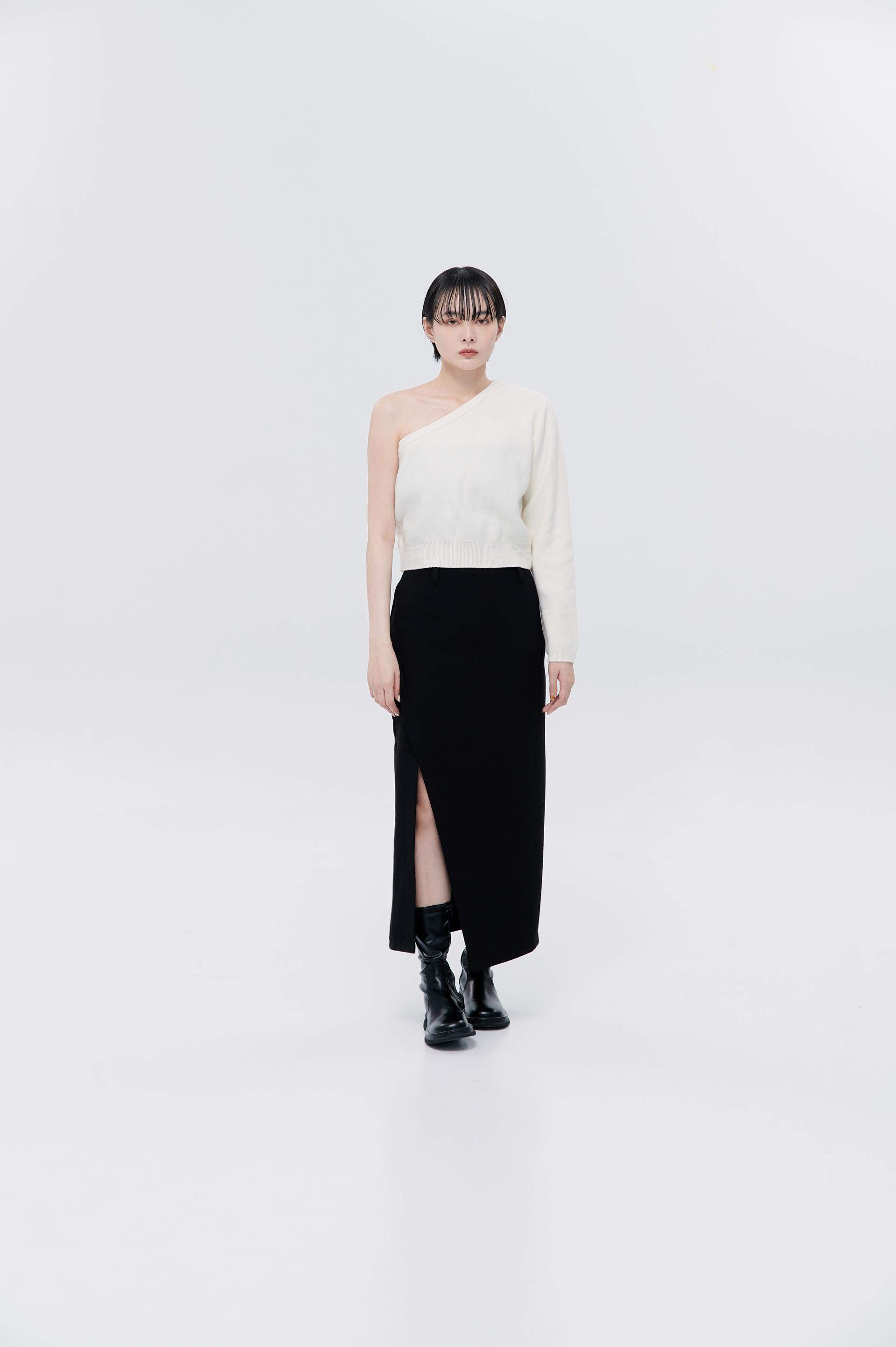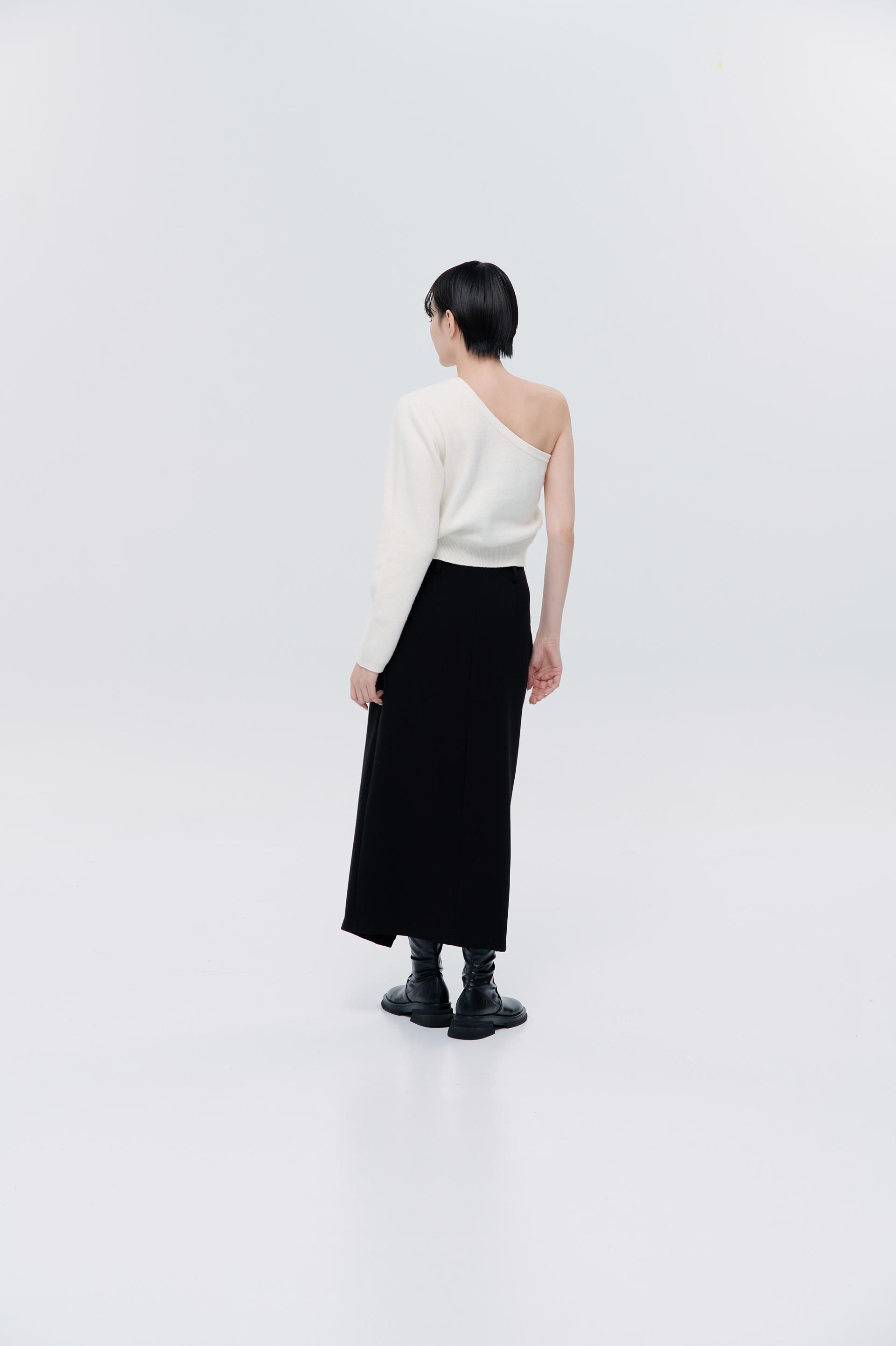 cashmere柔軟親膚單肩毛衣(米白)